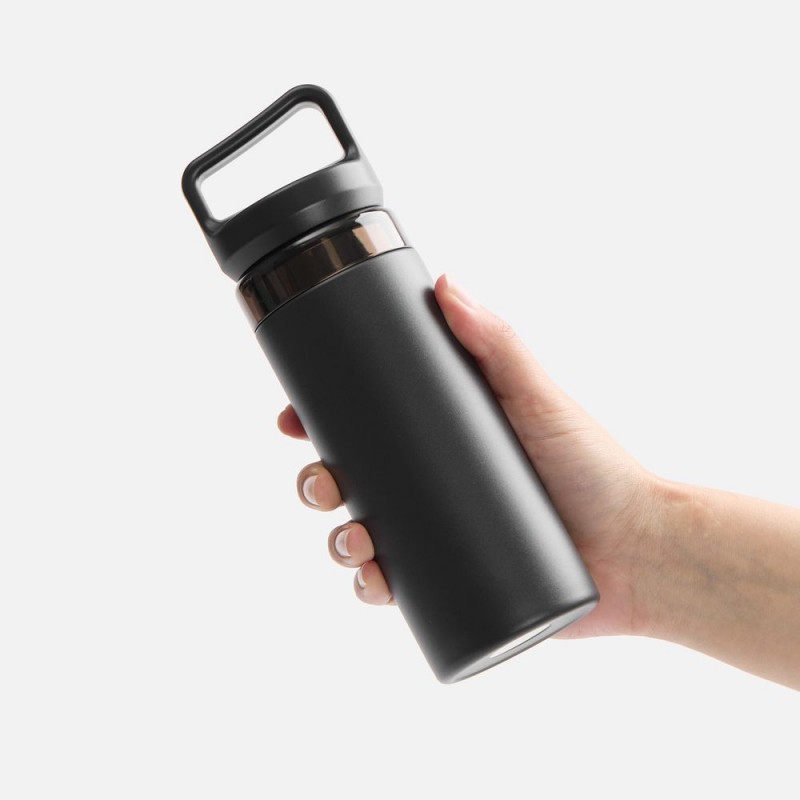 Термостакан Leval компактного размера с ситечком, удобной ручкой для переноски и надежной завинчивающейся крышкой — идеальный спутник на каждый день, готовый всегда поддерживать своего владельца горячим чаем, кофе или освежающей прохладной водой.