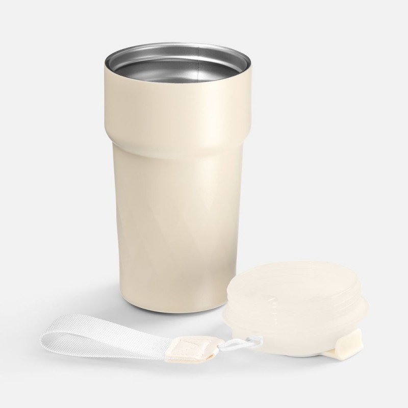 Смарт-термостакан в металлическом корпусе с легким рельефом.