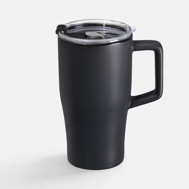 Эргономичная ручка удобно лежит в руке, а прозрачная крышка с отверстием для питья не дает содержимому разлиться на ходу или быстро остыть. Последнее особенно важно с учетом большого объема — 520 мл чая, кофе или какао хватит надолго.