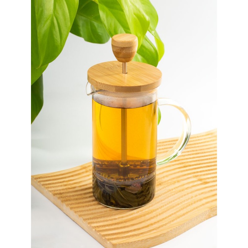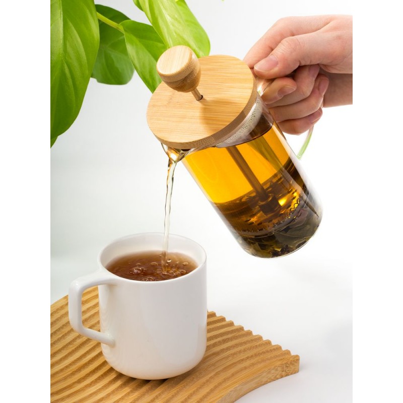 Эргономичная ручка и удобная деревянная крышка с поршнем обеспечивают легкость и комфорт в использовании. Благодаря прочному прозрачному стеклу можно наблюдать за процессом заваривания, наслаждаясь каждым этапом приготовления насыщенного и ароматного чая.