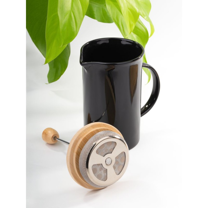 Элегантный керамический френч-пресс Mezzo в глянцевом черном исполнении — функциональный кухонный аксессуар и украшение любого пространства, от уютной домашней кухни до стильного офиса.Емкость 600 мл.