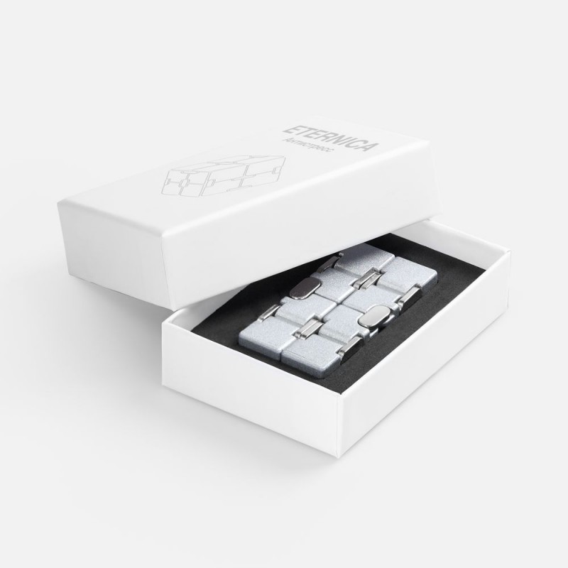 Этот складной антистресс состоит из восьми меньших кубов, которые позволяют вращать куб во всех направлениях. Каждое движение — с точностью механизма: складываешь, поворачиваешь, чувствуешь абсолютную собранность. Eternica —не просто антистресс, это тренажер для концентрации и обретения внутреннего равновесия.