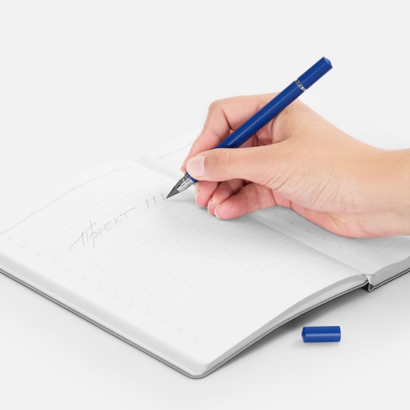 Изготовленный из сплава графита со свинцом долговечный наконечник карандаша не требует заточки, а закончившийся стержень в ручке легко заменить. Оба наконечника закрываются защитными колпачками.