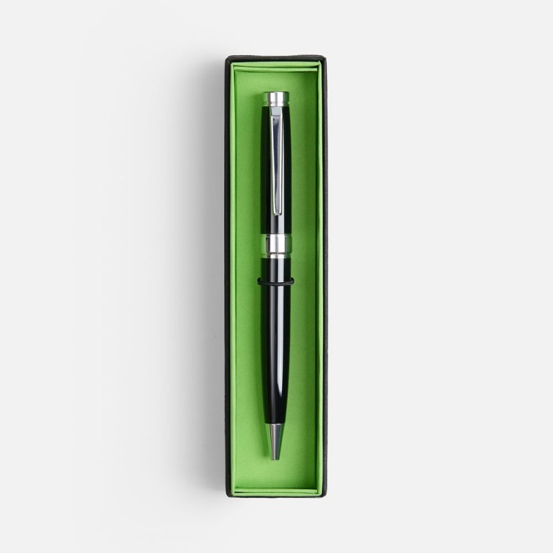 Металлическая ручка Broad Ring в классическом стиле. Футляр из дизайнерской бумаги с контрастным коробом придает подарку законченный и элегантный вид.