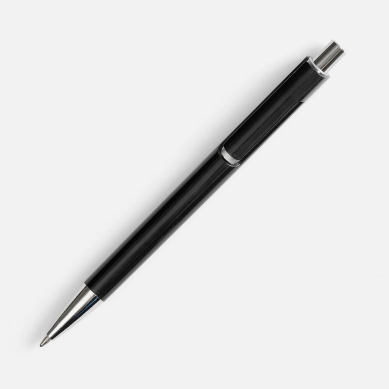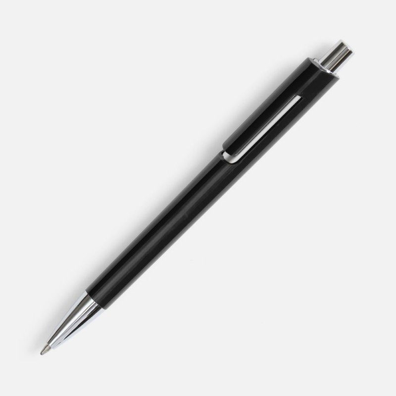 Шариковая ручка с цветным глянцевым корпусом и акцентными серебристыми деталями.
