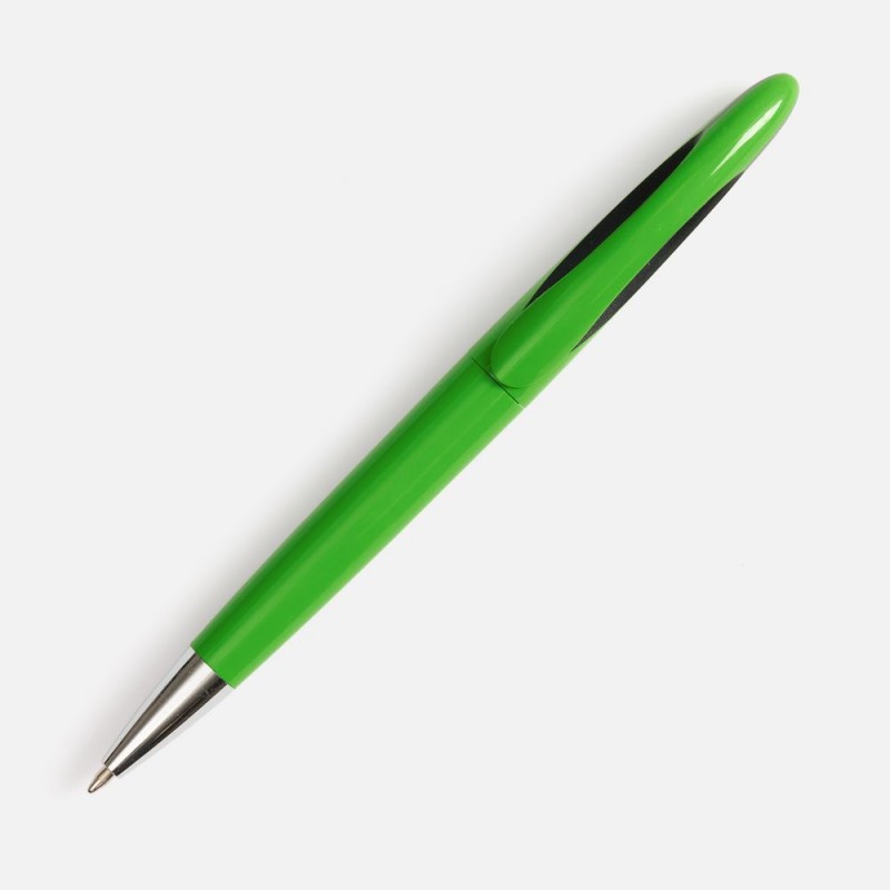 Шариковая ручка приятных округлых форм с цветным глянцевым корпусом и черным акцентом.