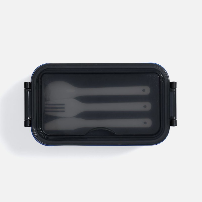 Удобная конструкция с крышкой на защелках обеспечивает надежную фиксацию. Специальное отделение под крышкой позволяет хранить столовые приборы, освобождая дополнительное пространство в сумке.