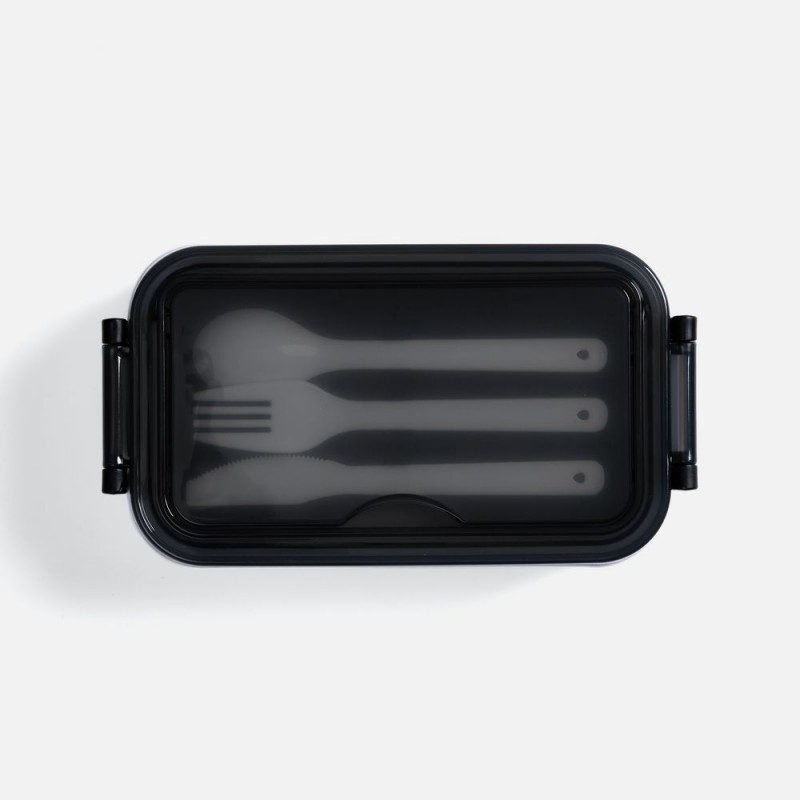 Удобная конструкция с крышкой на защелках обеспечивает надежную фиксацию. Специальное отделение под крышкой позволяет хранить столовые приборы, освобождая дополнительное пространство в сумке.