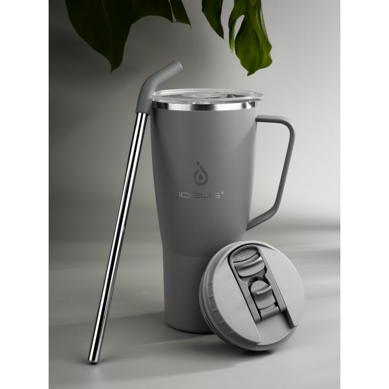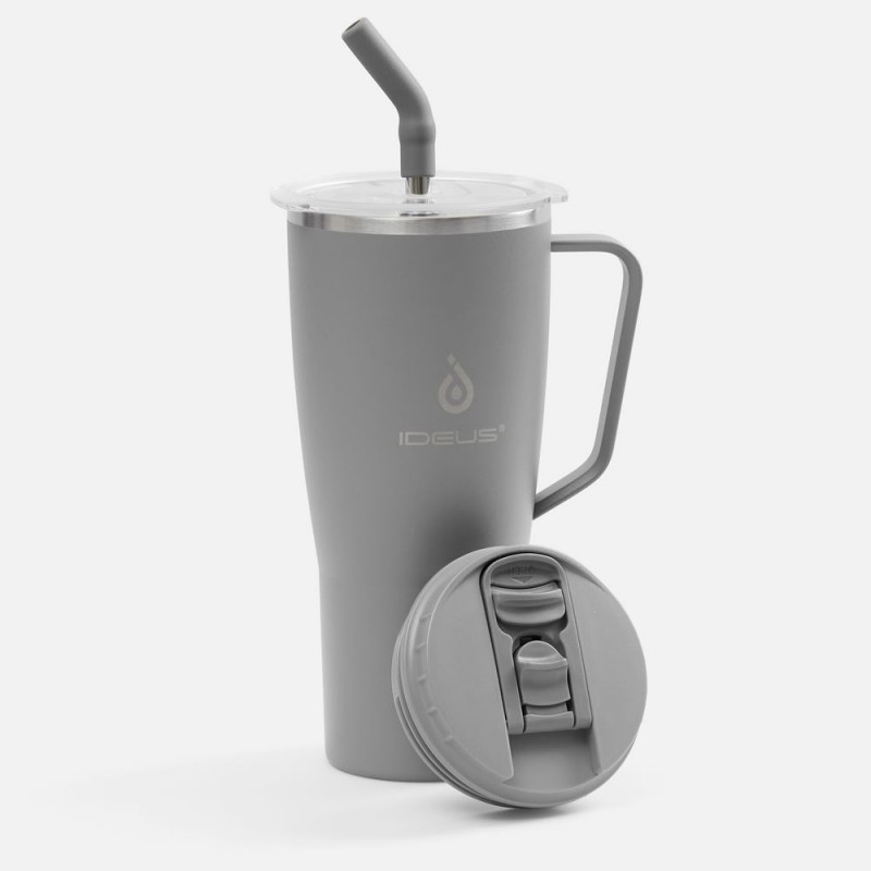 • 2 крышки в комплекте: одна на 100% герметичная с механизмом блокировки отверстия для питья, вторая — с отверстием для трубочки