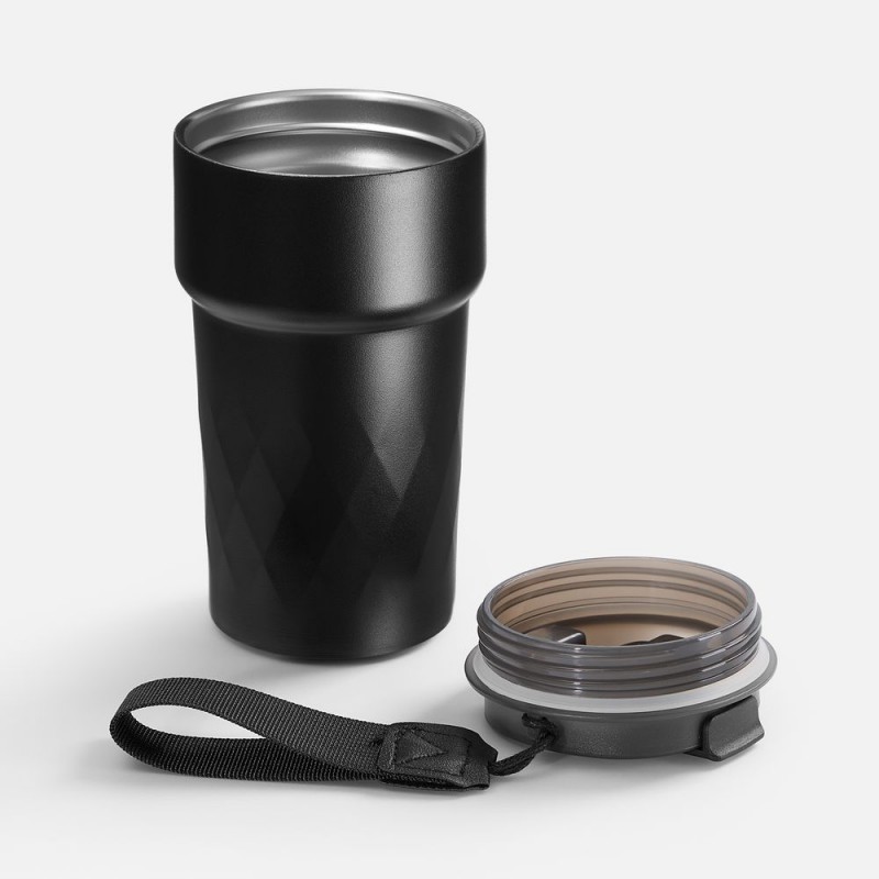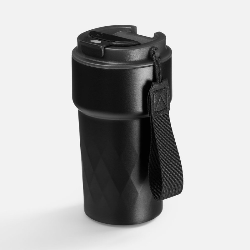 Смарт-термостакан в металлическом корпусе с легким рельефом.
