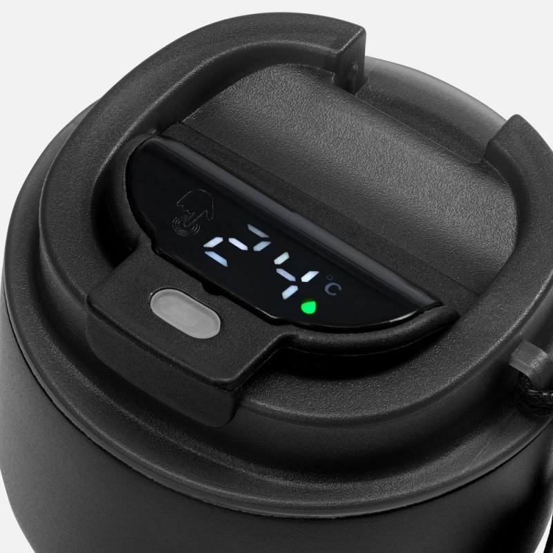 Двухслойная конструкция из нержавеющей стали с вакуумной изоляцией корпуса сохраняет напитки горячими (60 °C) или прохладными (10 °C) в течение 6 часов. При изменении температуры меняется цвет индикатора: для холодной воды он зеленый, для теплой — оранжевый, и для горячей — красный.