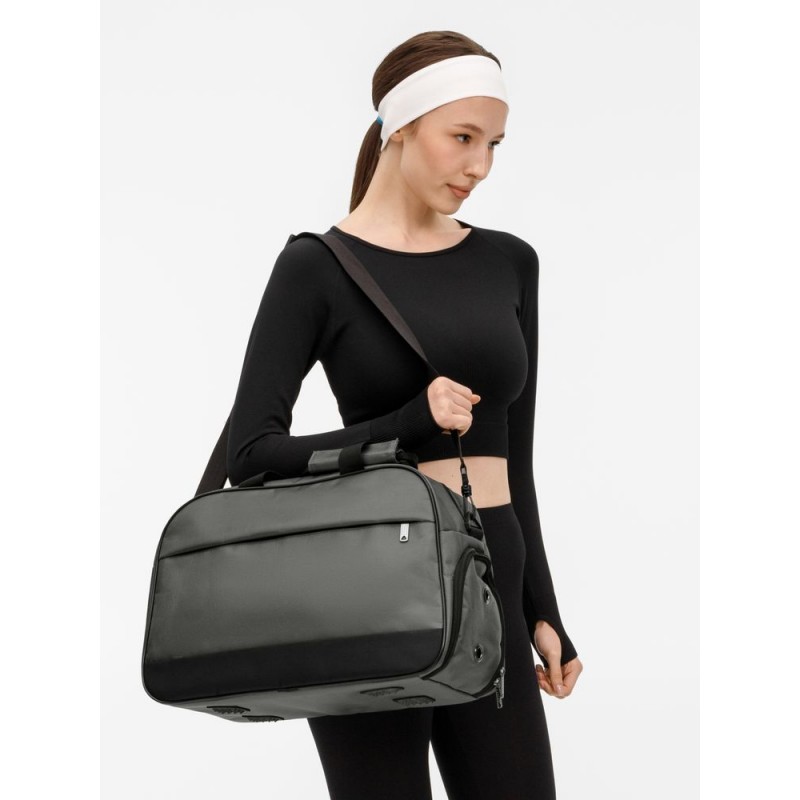 Усиленное дно с рифлеными ножками защищает сумку от износа, а боковое отделение с вентиляцией идеально подходит для обуви. Сумка оснащена удобными ручками и регулируемым плечевым ремнем, что обеспечит комфорт при переноске.
