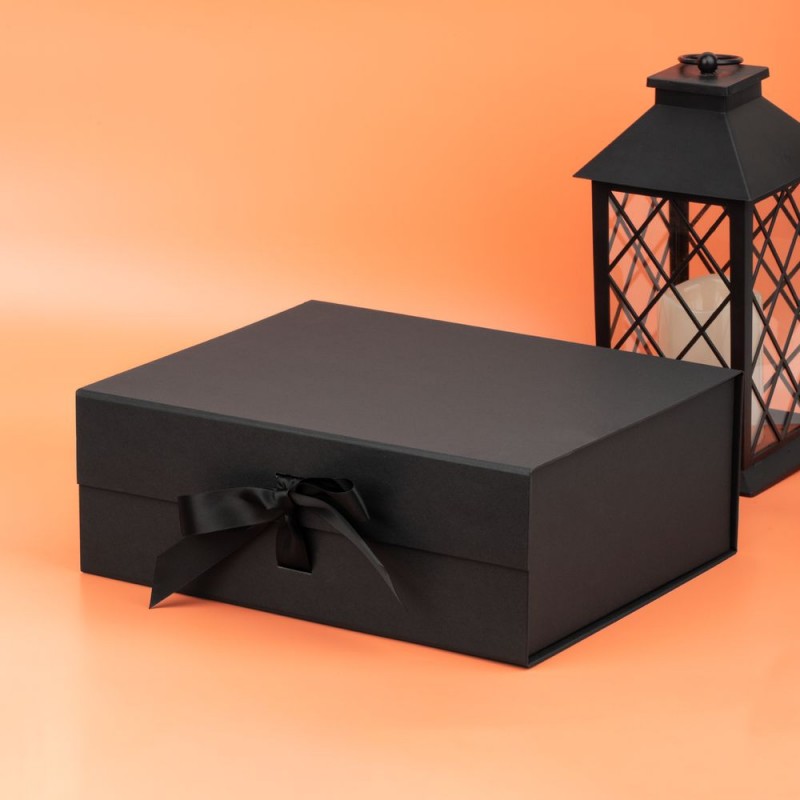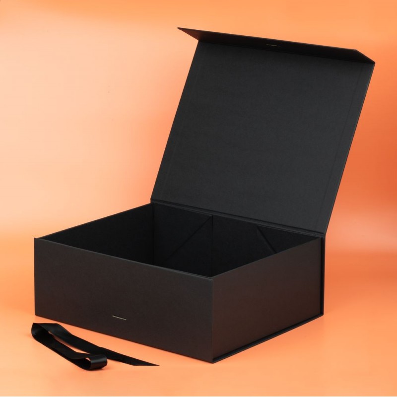 Коробка из переплетного картона, кашированного тонированной в массе крафтовой бумагой. Крышка на двух магнитах дополнительно фиксируется репсовой лентой.Толщина картона 2 мм.