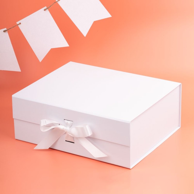 Коробка из переплетного картона, кашированного крафтовой бумагой. Крышка на двух магнитах дополнительно фиксируется репсовой лентой.Толщина картона 2 мм.