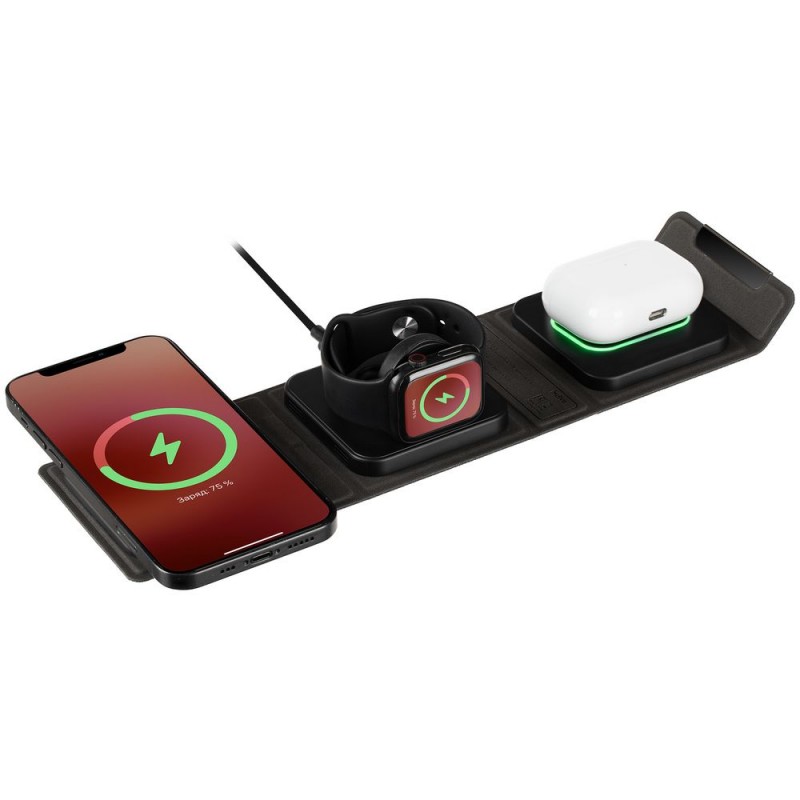 triFlex — компактное устройство беспроводной зарядки для самых мобильных и современных пользователей. Станцию легко свернуть в аккуратный бокс, поэтому ее удобно использовать не только в офисе, но и находясь в дороге — подзарядка может понадобиться где угодно.