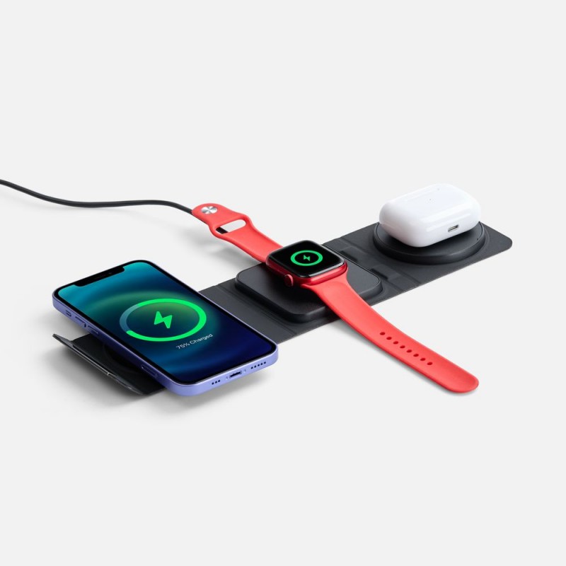 Зарядная станция совместима со всеми смартфонами, поддерживающими технологию беспроводной зарядки Qi. Также предусмотрено место для зарядки часов Apple Watch и наушников. Зарядка начнется автоматически при размещении устройств на индукционной площадке.