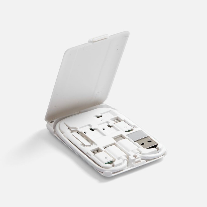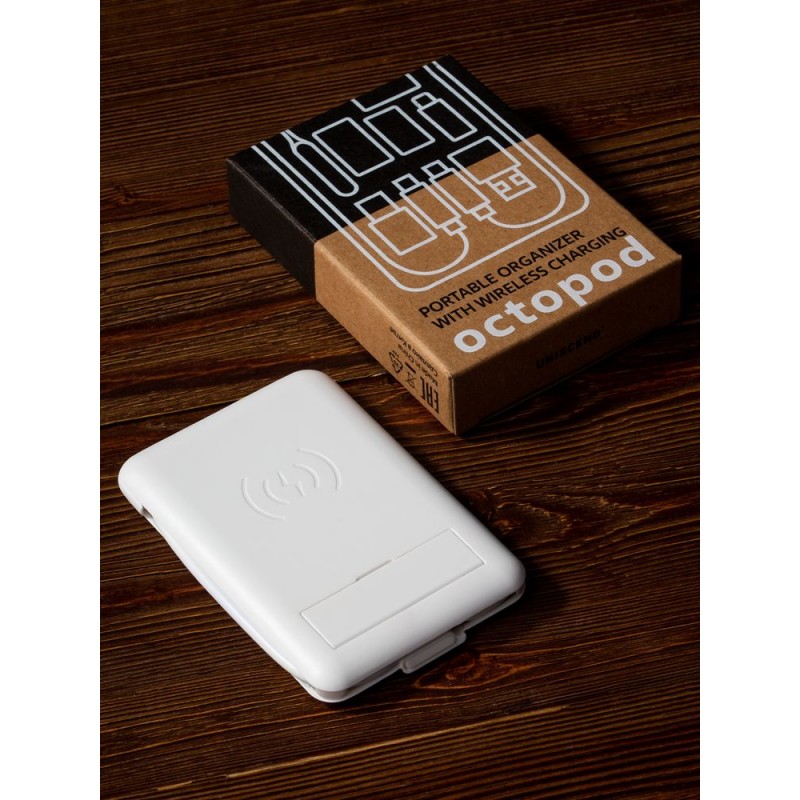 Octopod — компактная станция для беспроводной зарядки, которая укомплектована ключом для слота SIM-карты, кабелем с разъемами USB Type-C-Type-C, переходниками на разъемы lightning, USB Type-A и micro USB.
