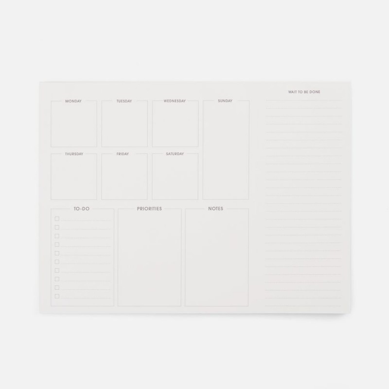 7 дней — 7 вызовов продуктивности, 7 стратегий, разбивающихся на несколько подпунктов и тактик. Настольный планер Septima подойдет и для работы, и для дома, ведь воскресенье — зачастую самый важный и насыщенный день недели.