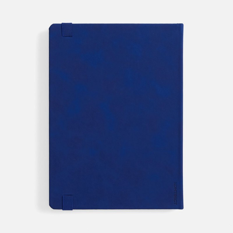 Ежедневник с твердой обложкой, выполнен из материала Nubuck Touch, темно-синий ХХ, дополнен ляссе темно-синего цвета.