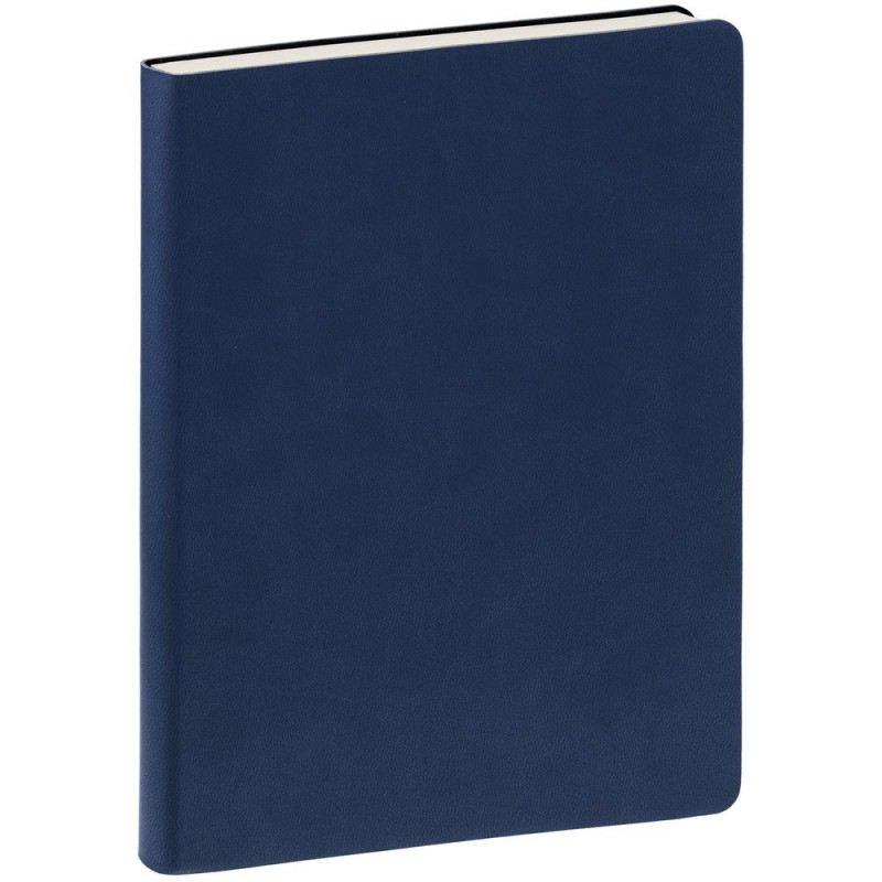 Ежедневник с гибкой обложкой, выполнен из материала Latte, темно-синий, дополнен ляссе в цвет обложки.