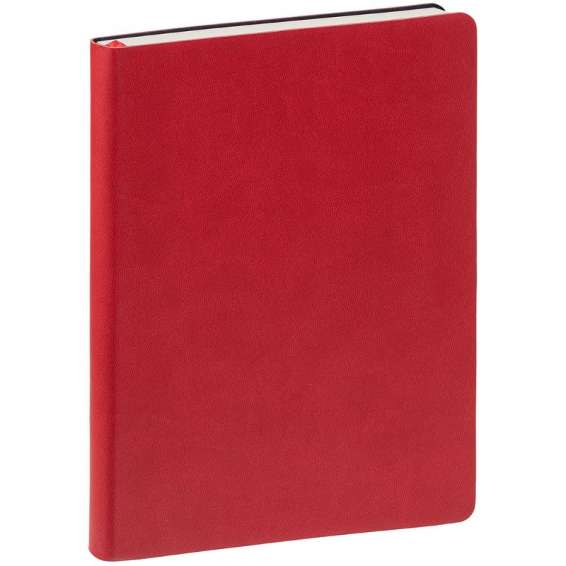 Ежедневник с гибкой обложкой, выполнен из материала Latte, красный, дополнен ляссе в цвет обложки.