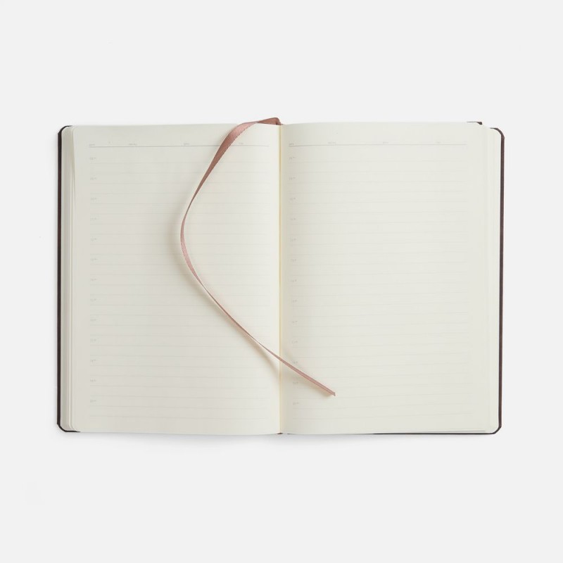 Ежедневник с твердой обложкой, выполнен из материала Nubuck Touch, темно-коричневый ZZ, дополнен ляссе темно-коричневого цвета.