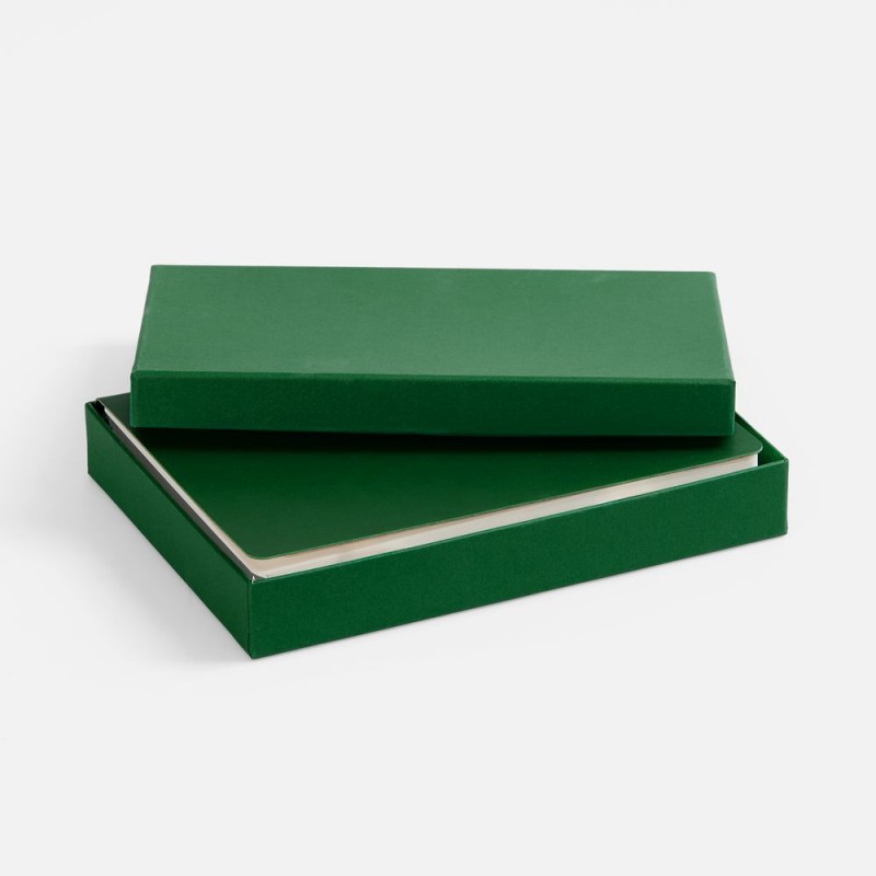 Коробка изготовлена из переплетного картона, кашированного гладкой дизайнерской бумагой Malmero.