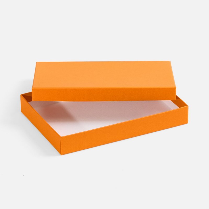 Коробка изготовлена из переплетного картона, кашированного гладкой дизайнерской бумагой Magic.