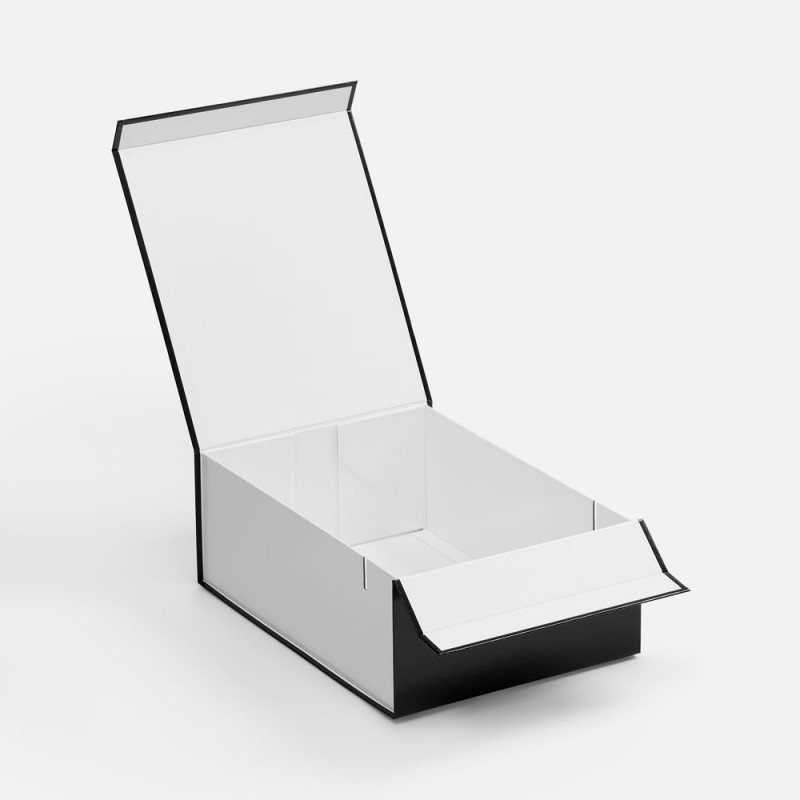 Плотная коробка из переплетного картона толщиной 2 мм с практичной конструкцией на двух створках. Складная система с уже нанесенным двусторонним скотчем позволяет быстро собрать коробку без дополнительных инструментов. Лайнер с полуглянцевым ламинированием устойчив к повреждениям и надолго сохраняет безупречный вид.