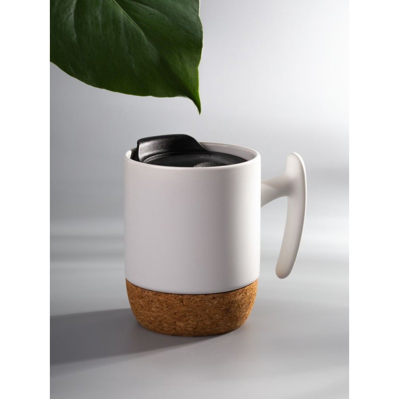 Эта кружка — стильное сочетание функциональности и дизайна. Корпус из керамики сохраняет напиток теплым, нижняя часть из пробки защищает поверхность от нагрева и скольжения, а пластиковая крышка предотвращает проливание. Эргономичная ручка делает использование особенно удобным.