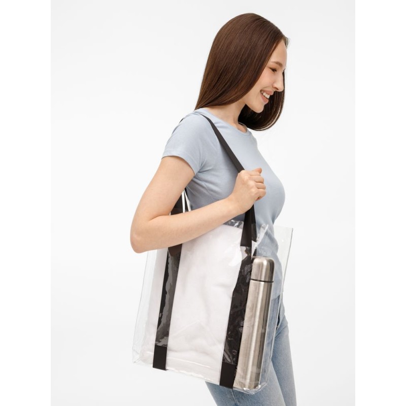 Прозрачные сумки никогда не выйдут из моды. А цветные ручки легко впишутся в брендбук и точно передадут настроение, которое хотелось бы транслировать.